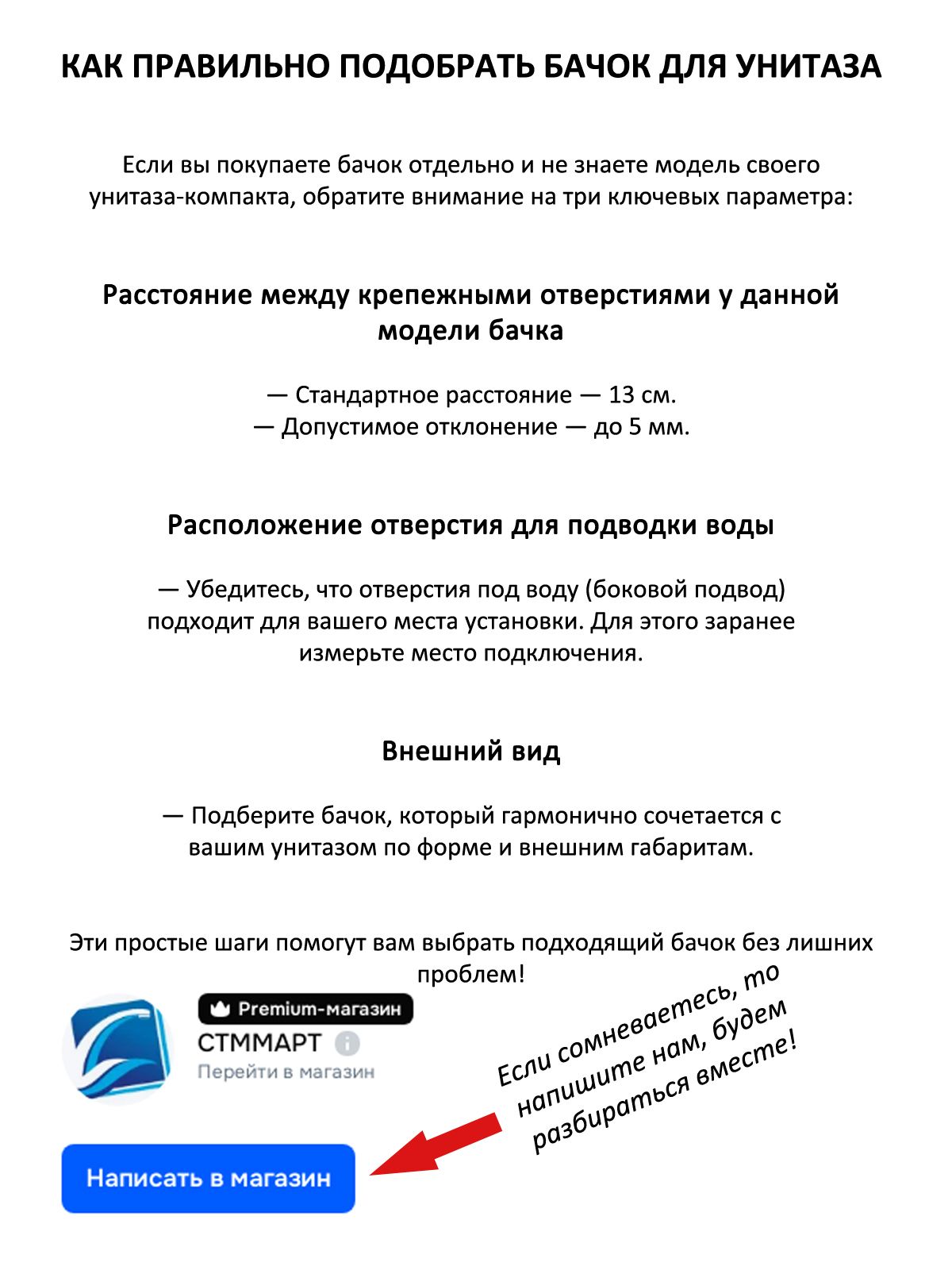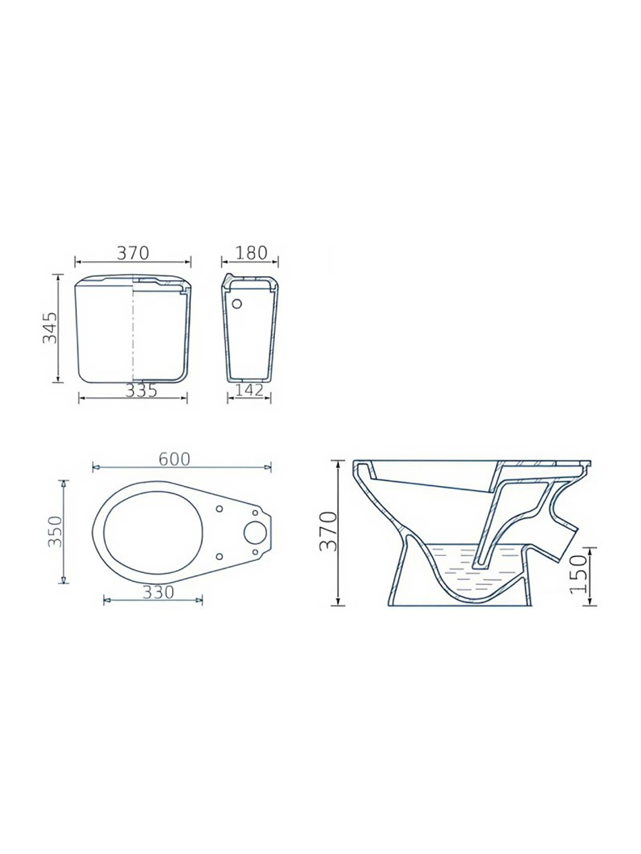 Отверстия для установки впускного механизма сделаны сбоку бачка (справа и слева), что предполагает использование арматуры с боковым подключением воды G1/2.