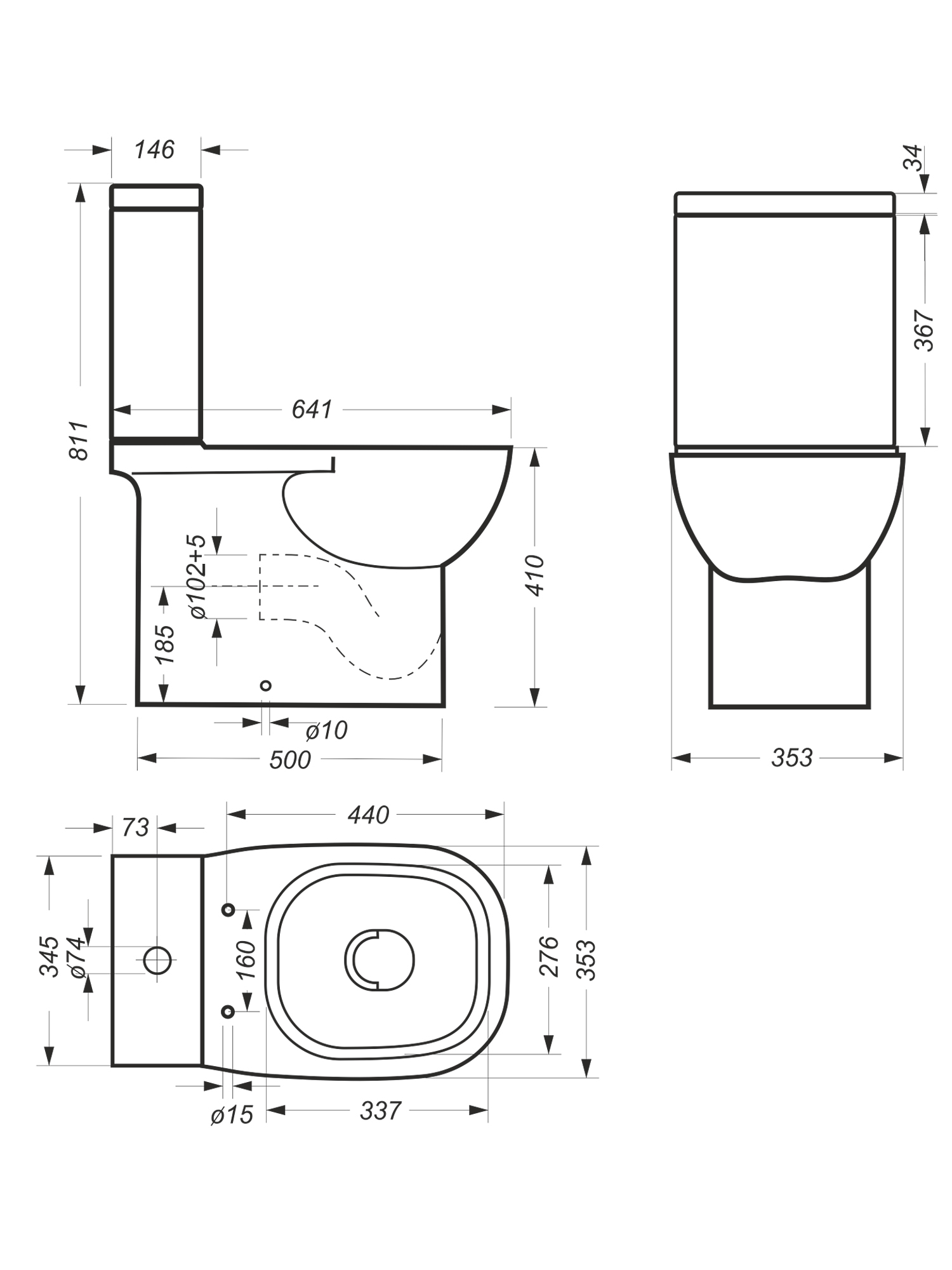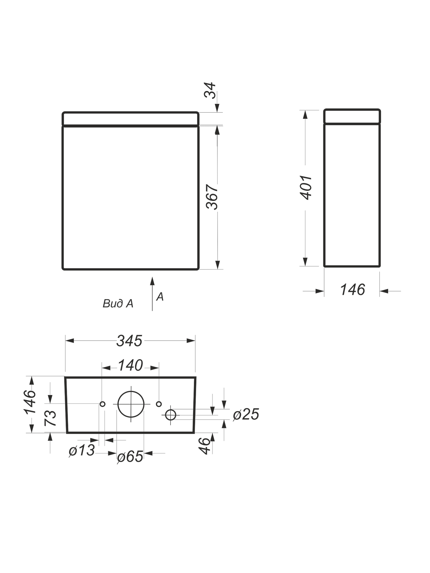 Отверстие для установки впускного механизма сделано в основании бачка, что предполагает использование арматуры с нижним подключением воды G1/2.